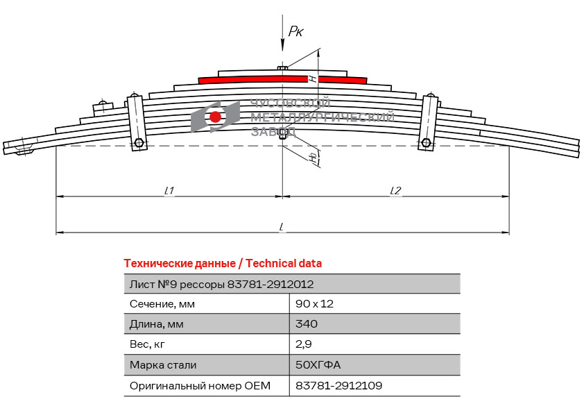 Рессора задняя для прицепа MA3 8378, 83781 10 листов