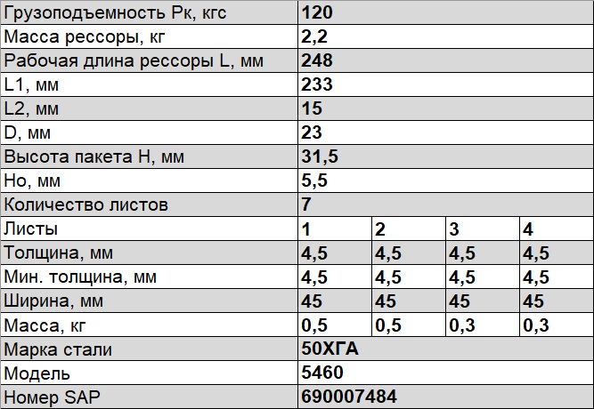 Рабочая длина рессоры L, мм