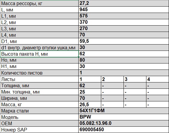 Рабочая длина рессоры L, мм