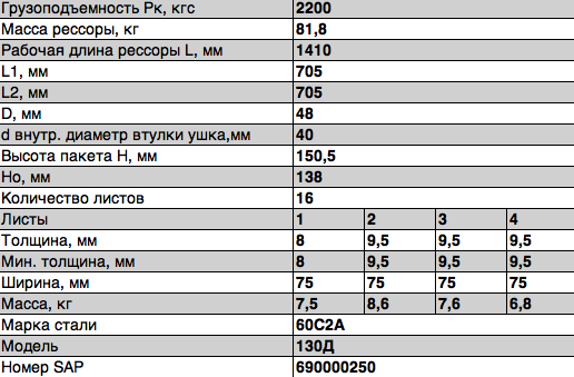 Рабочая длина рессоры L, мм