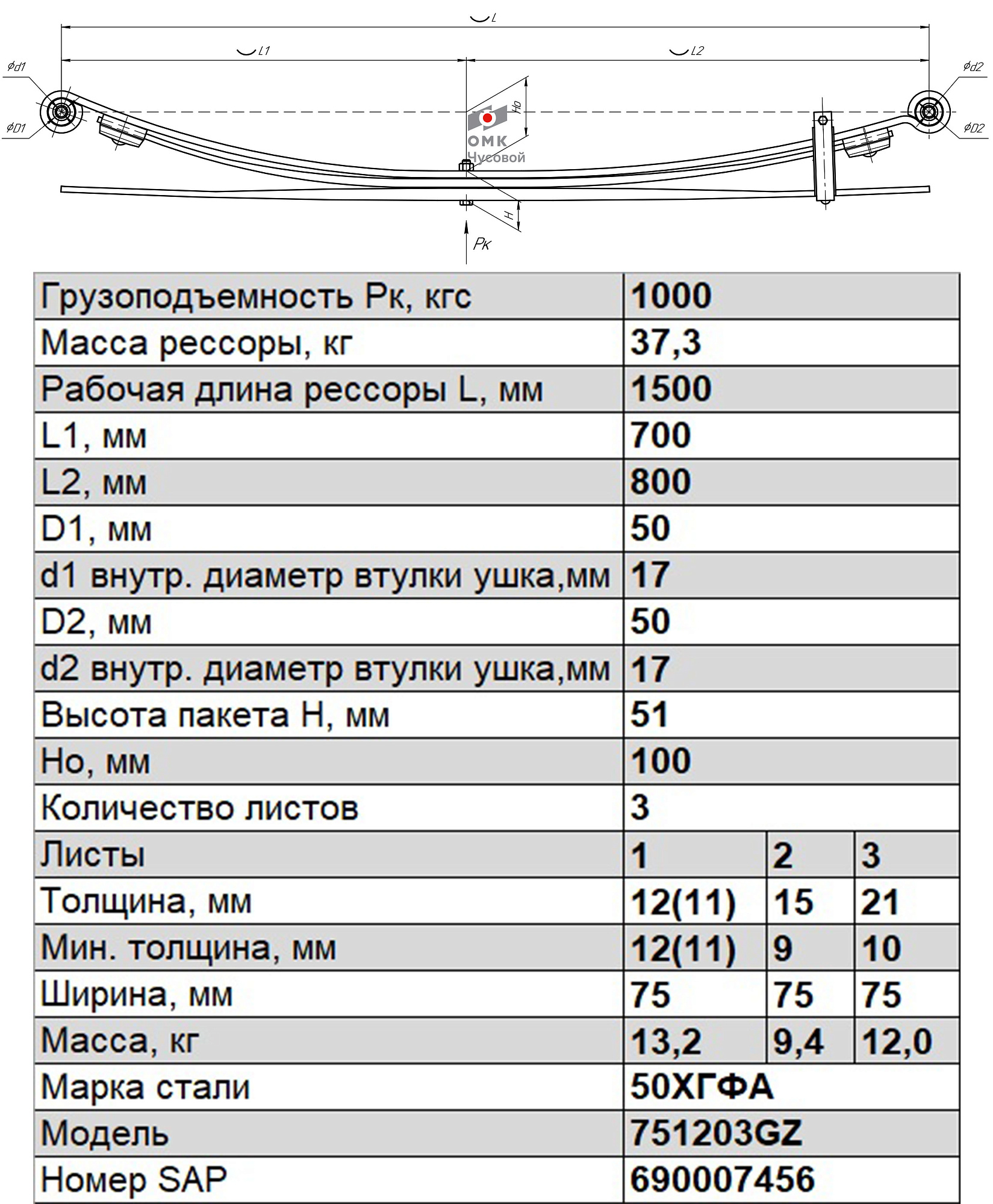 Гарантия на рессорную продукцию ОМК ЧУСОВОЙ 1 год без ограничения пробега с момента покупки у производителя. Ознакомиться с подробными условиями гарантии можно здесь.